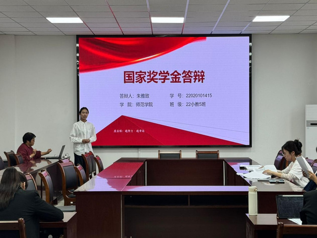为切实做好国家奖学金评定工作,充分彰显国家奖学金在激励优秀学子成长成才方面的重要导向作用,促进学院学风建设,发挥优秀学生的榜样作用,激励广大学生勤奋学习、全面发展,2025年9月18日,师范学院于敬贤楼409举行了2025年秋季国家奖学金答辩会。此次答辩会邀请了学院领导、教师代表担任评委,来自不同专业的共15名候选人参与了此次答辩。