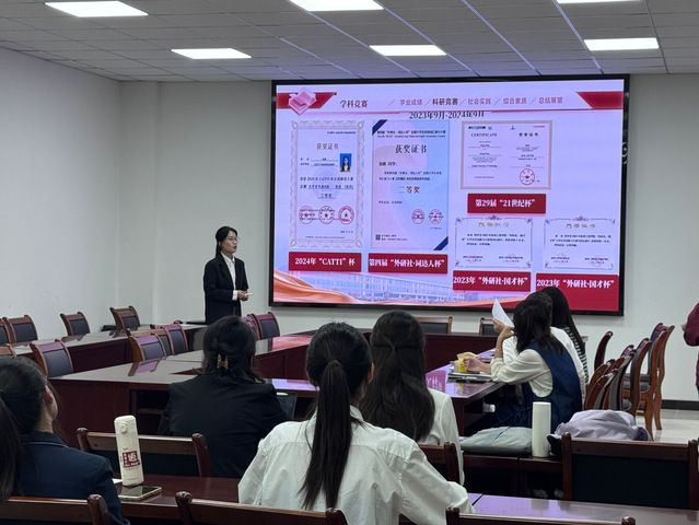 答辩伊始,进入个人展示环节。候选人们通过精心制作的PPT,从学业成绩、科研成果、社会实践、志愿服务等多个维度,全面展示了自己的综合实力和成长历程。他们中,有在专业学习中名列前茅的 “学霸”,也有在科研竞赛中屡获佳绩的“创新能手”,还有积极投身社会公益的“志愿先锋”。候选人们精彩的展示和自信的回答,赢得了现场评委和观众的阵阵掌声。