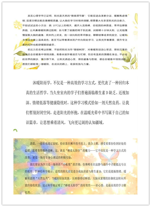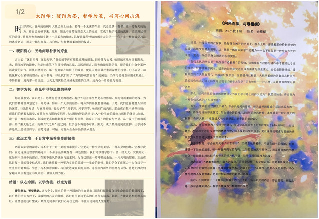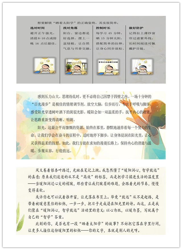 本次活动围绕“晒着太阳学”这一温馨主题,鼓励参与者结合自身经历,分享阳光学习带来的积极能量。同学们以文字为媒介,抒发对智学致远的思考与感悟。一篇篇推文,如冬日暖阳般温润心灵,展现了同学们对生活的细腻观察与对成长的深刻理解。