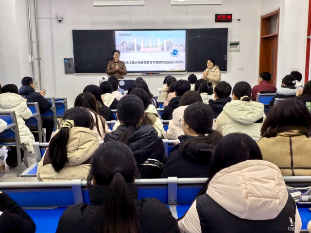 为加强校际教育合作,搭建研究生招生与人才培养交流平台,帮助师范类学子明晰考研方向,2025年12月10日,南京信息工程大学教师教育学院徐梅丹博士应邀莅临我校师范学院,开展研究生招生专场宣讲会。师范学院60余名有志报考该校的学生参与活动,现场交流氛围热烈。